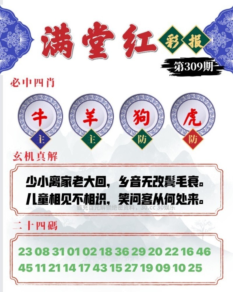 311期:龙门客栈解析 掌柜:五花八门 小二:客官,来点什么 客官:来一份羊肉汤,两个烧饼 解:五花八门。解蛇猪猴狗鼠牛 推荐特肖:蛇猪猴狗鼠牛 |